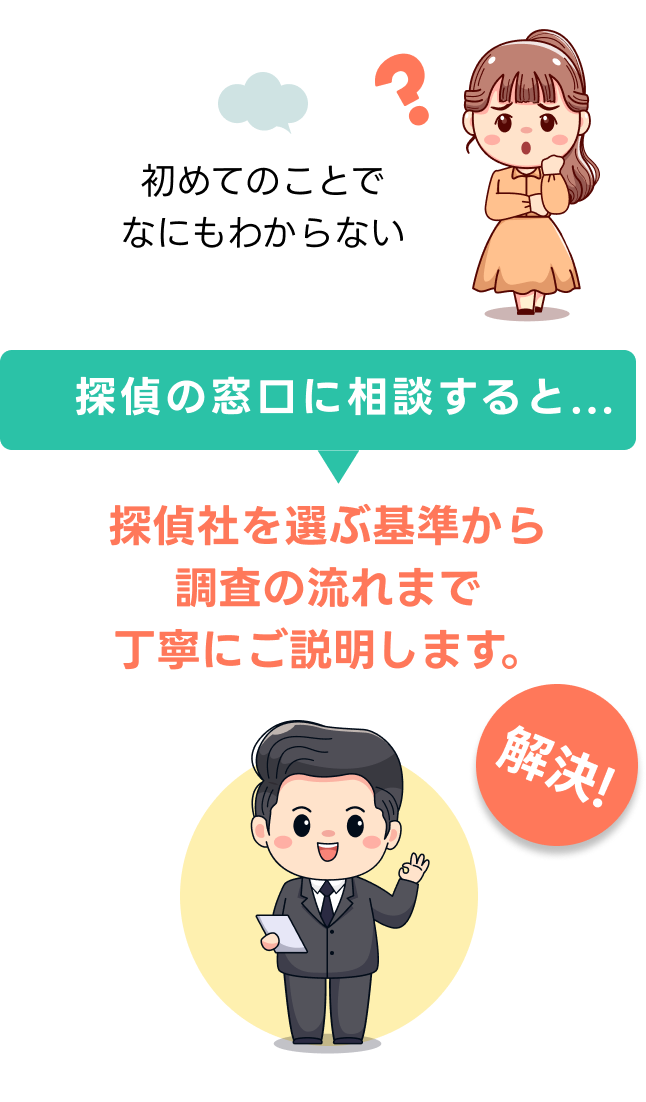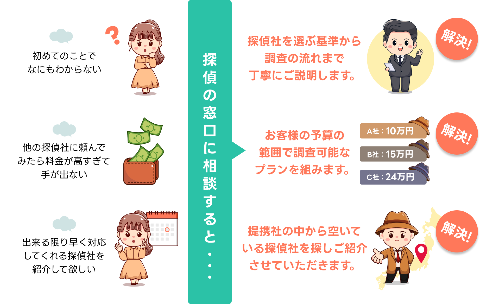 などなど、探偵の窓口はさまざまな状況に対応しています。
