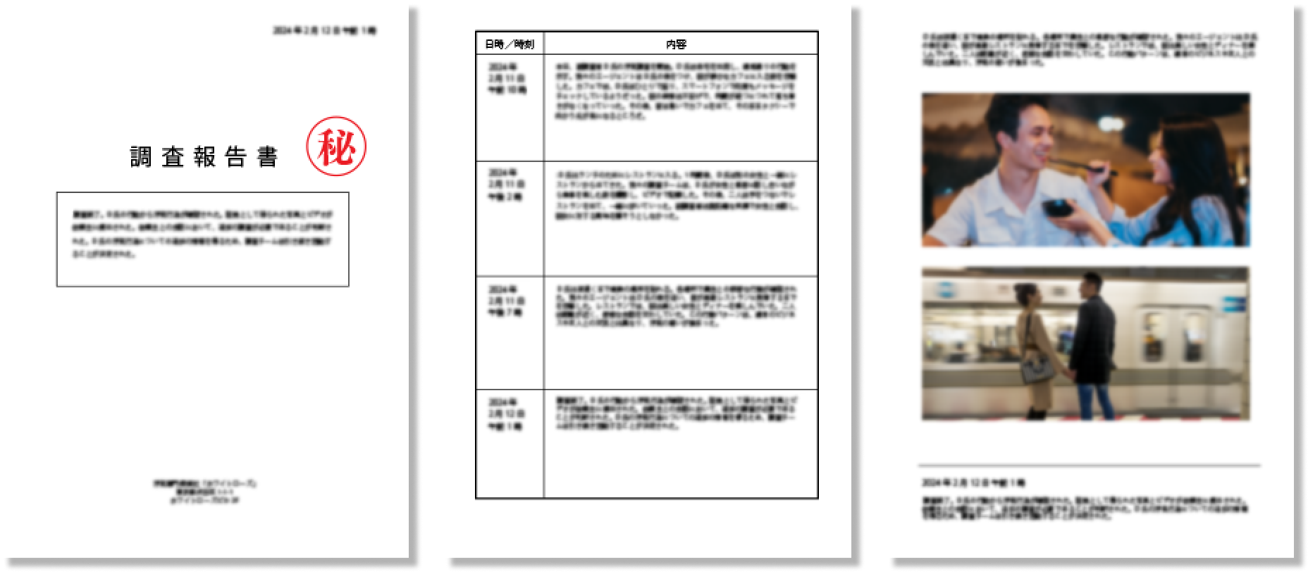 最近、妻が日中なのに連絡が遅く、飲み会と称しての外出にも関わらず車で出掛け朝帰りになることがあった。何もなければよいのだが、もし何かあるのであれば早めに解決を図りたいので調べてほしい