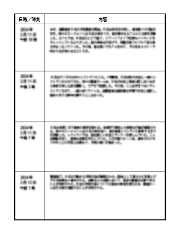 対象の利用した建物の住所・店名・電車の乗車時刻・車の車種・ナンバーなども記録し、